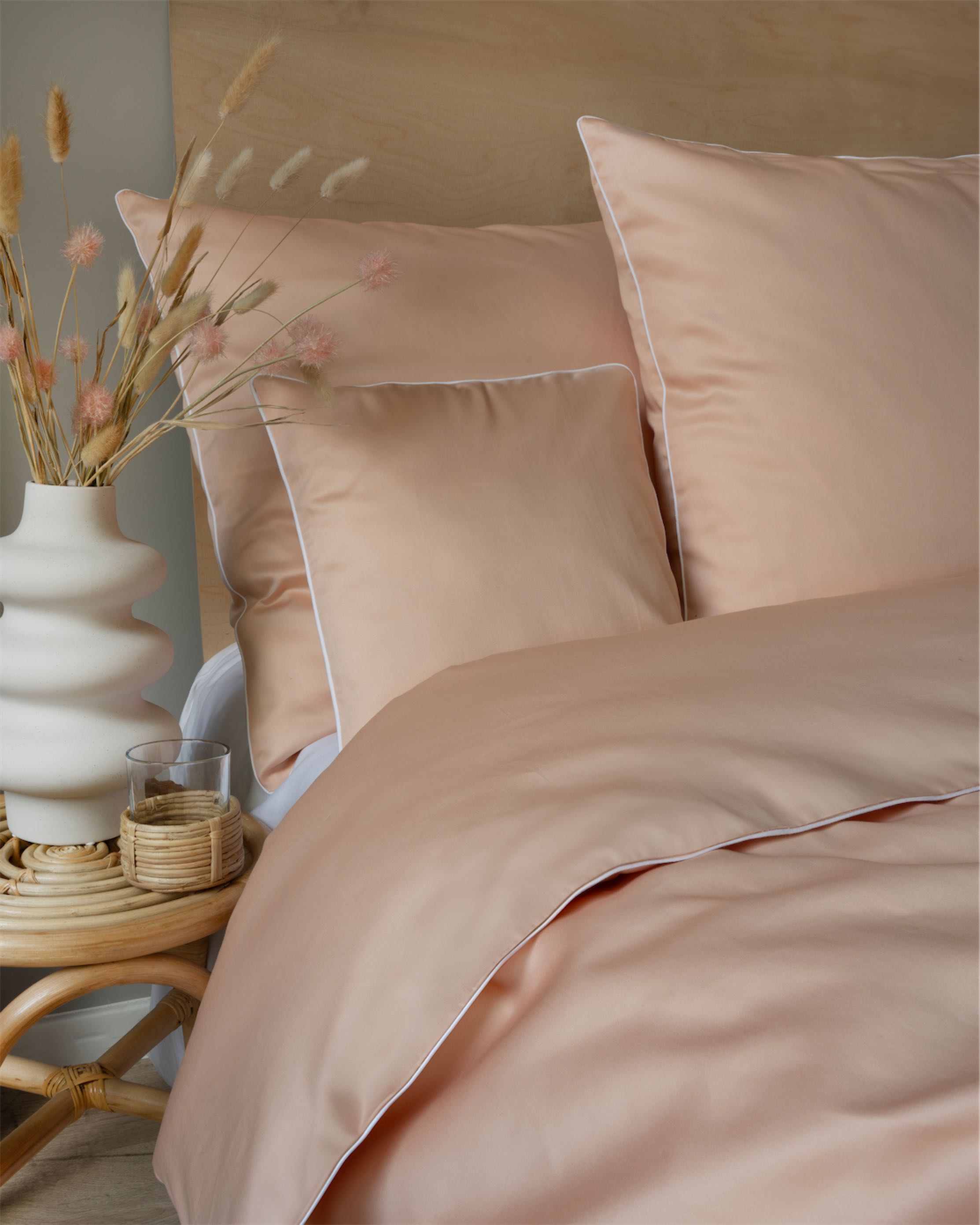 Brzoskwiniowy odcień z białą lamówką wprowadza do wnętrza subtelną świeżość i ciepło,