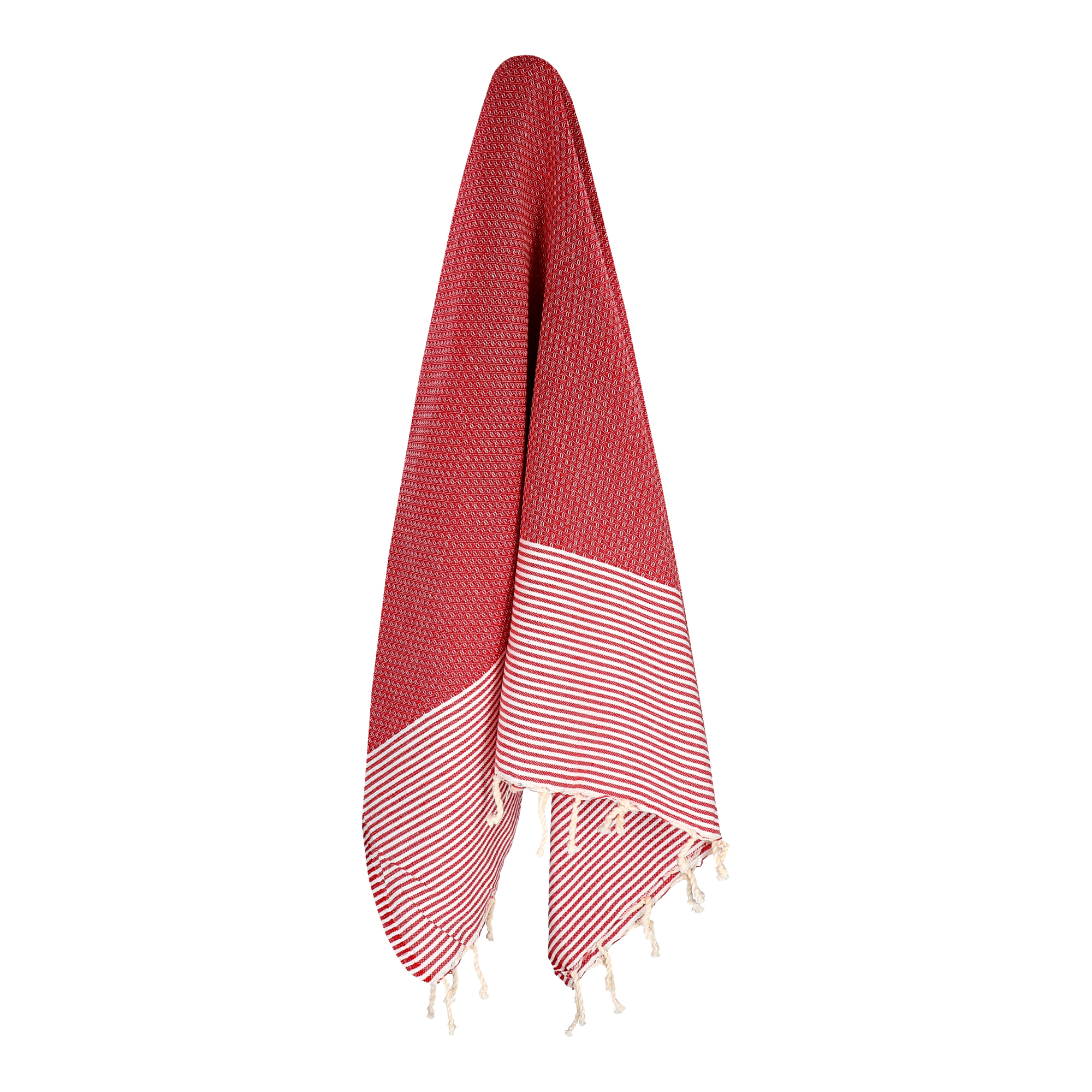 Ręcznik Fouta o splocie plastra miodu w drobne paski 100x200 cm - Czerwony