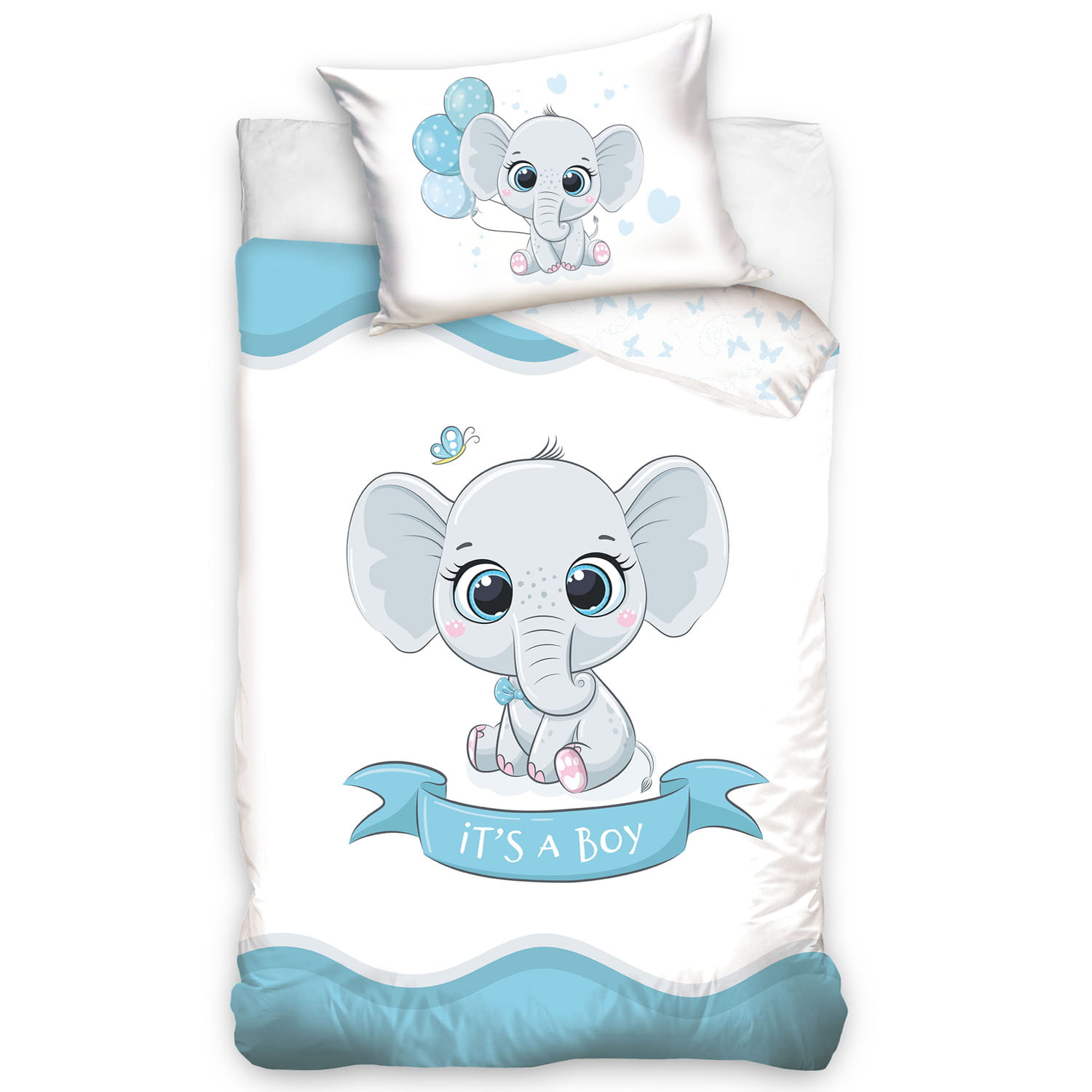 Pościel Dziecięca Bawełniana Happy Animals 100x135 Słonik Niebieski
