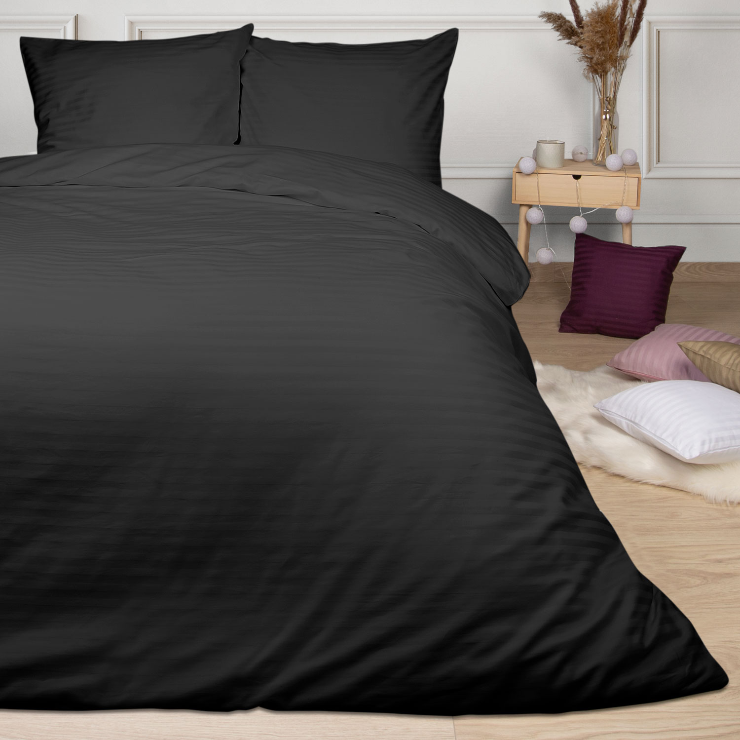 Pościel satynowa bawełniana 180x200 w głębokim, czarnym kolorze