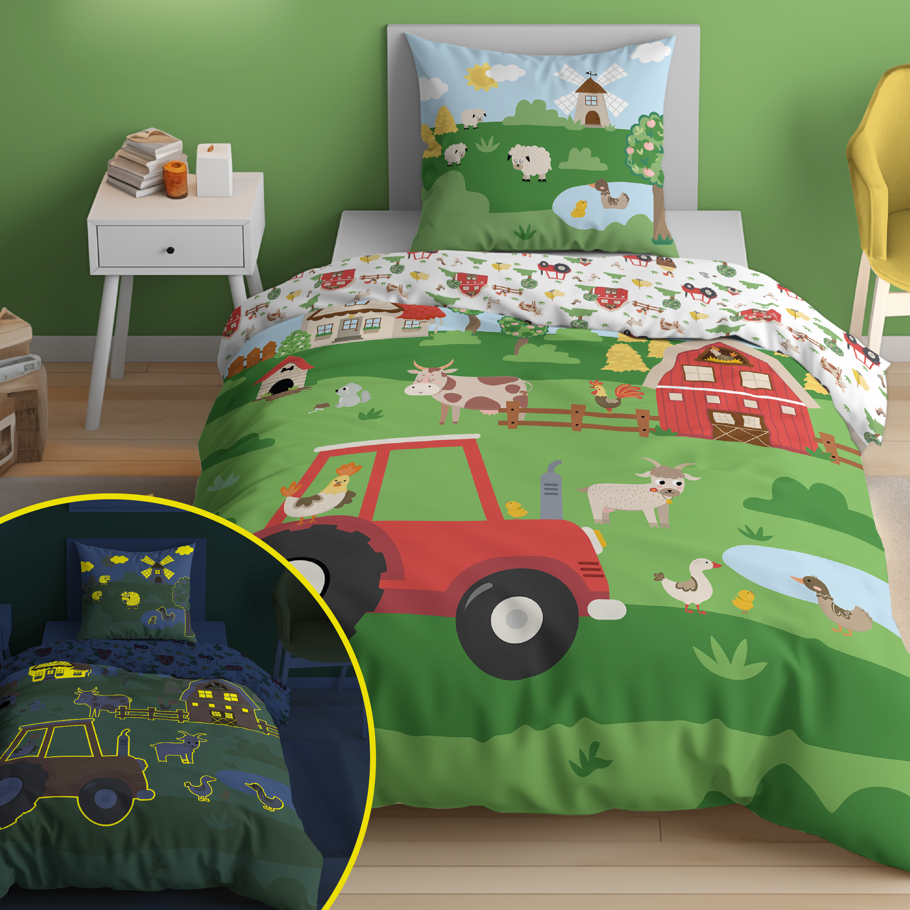 Pościel bawełniana Świecąca w ciemności 160x200 Wesoła Farma Traktor III