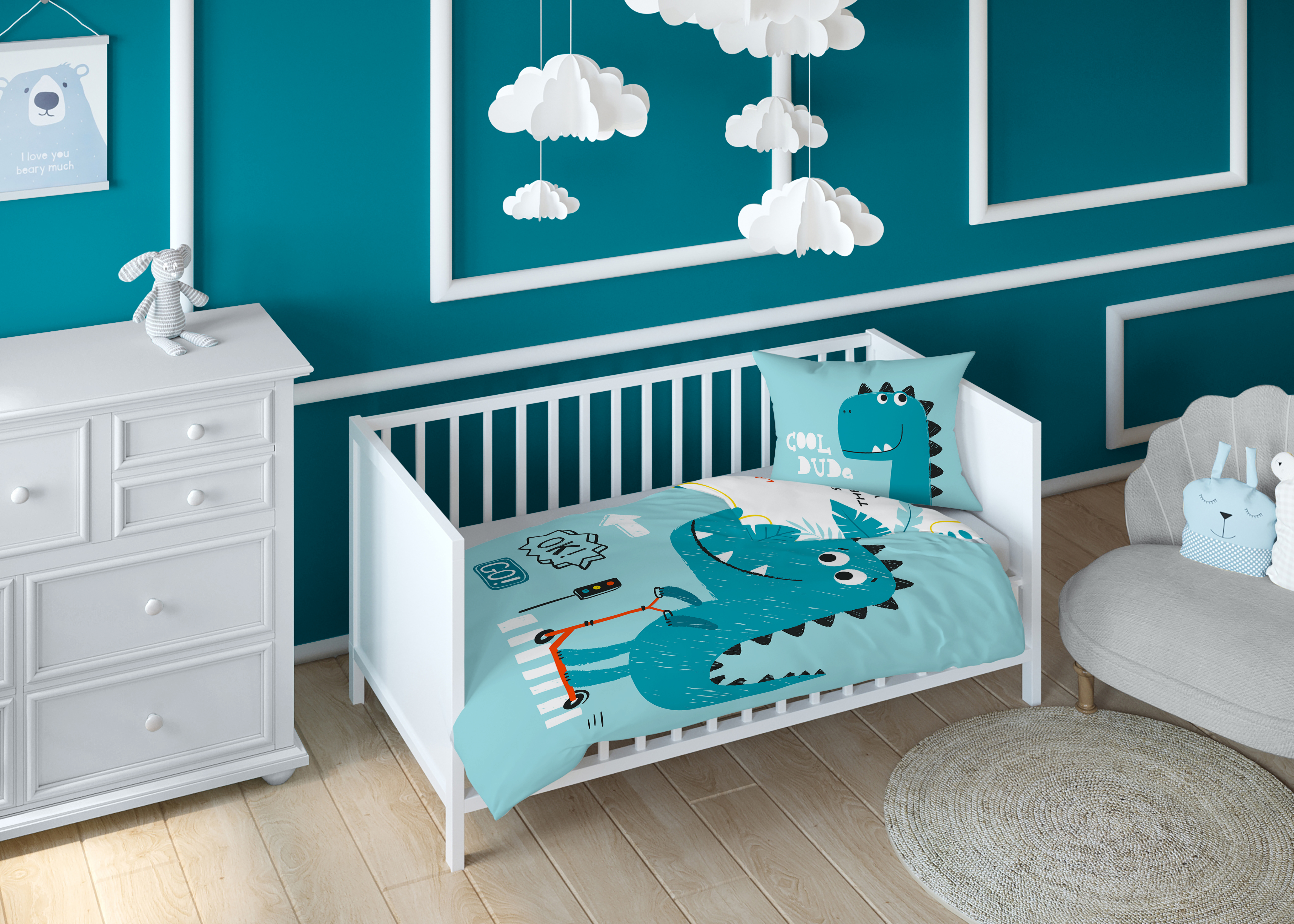 Pościel dziecięca Maya Moo bambusowa 100x135 Dinuś w Drodze I