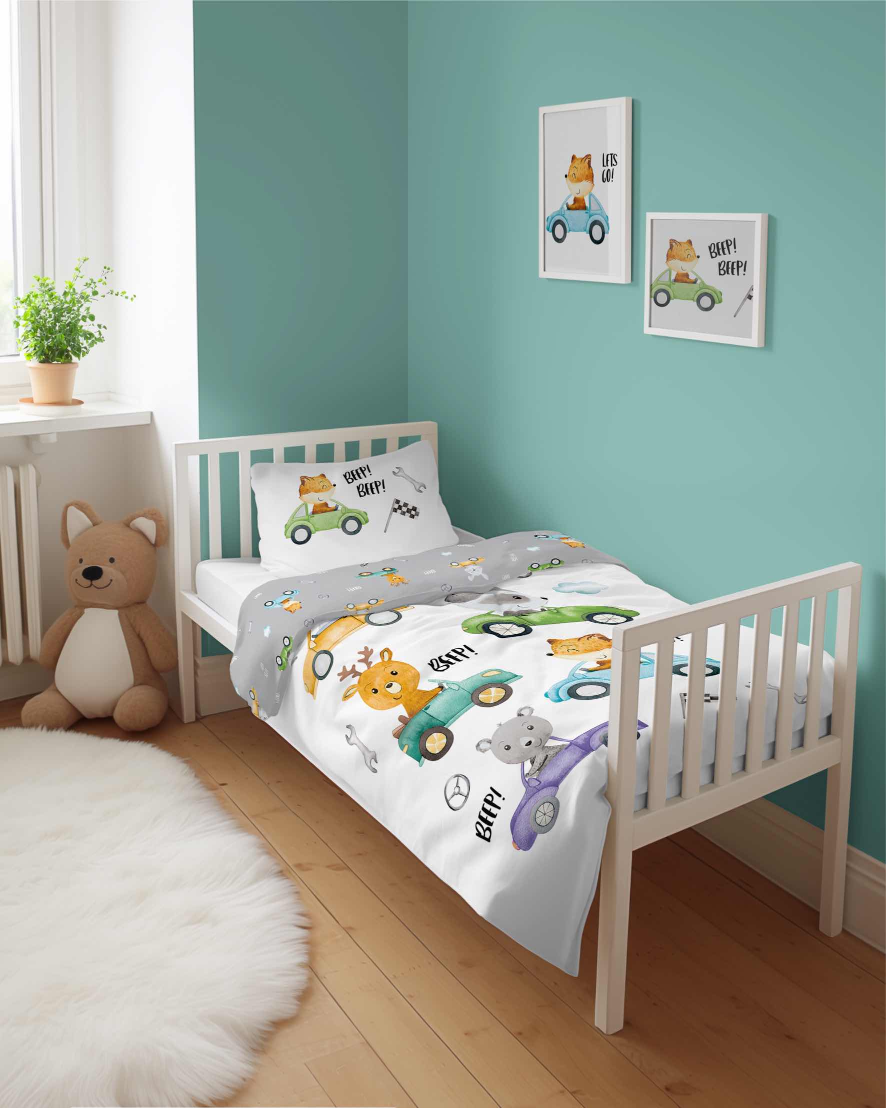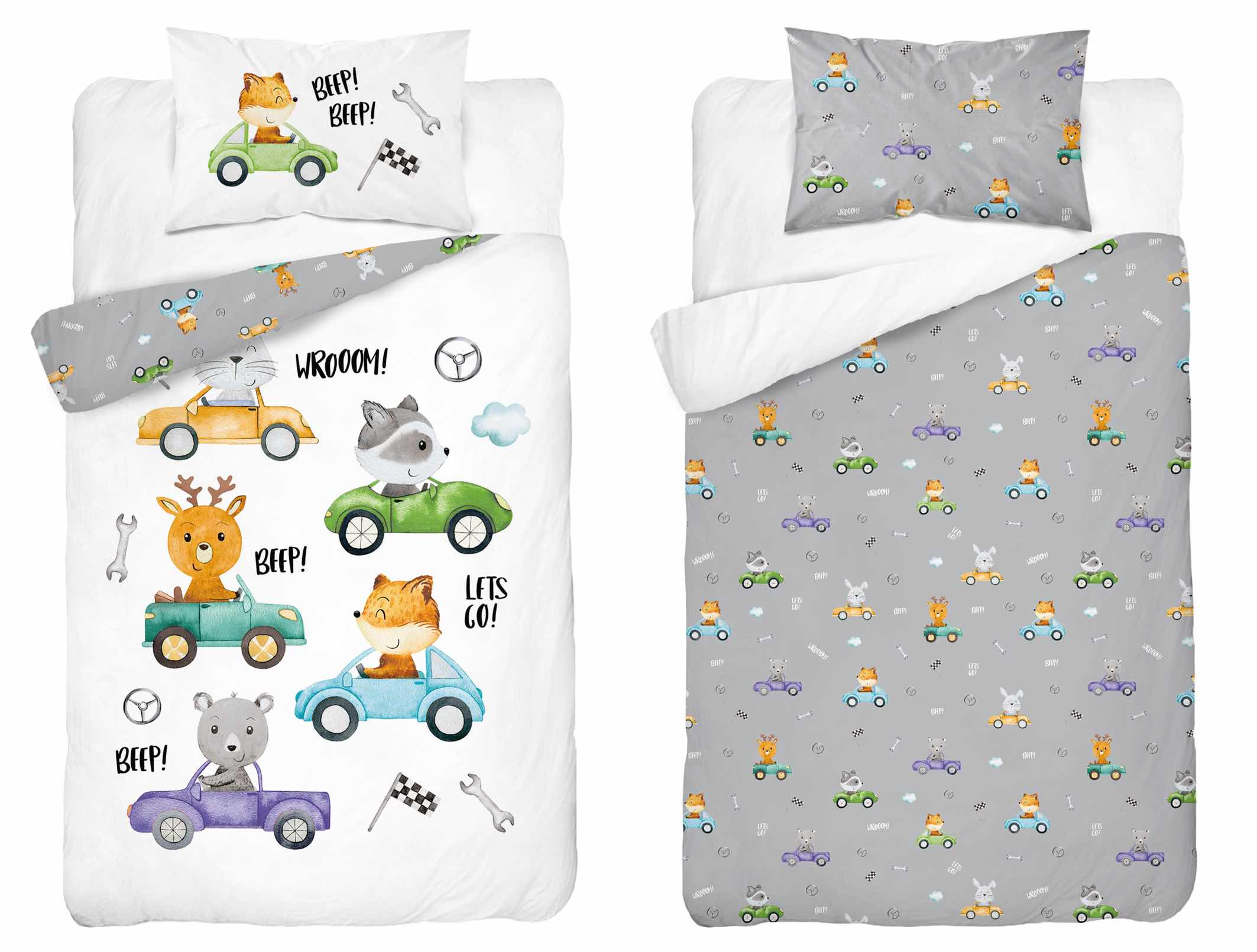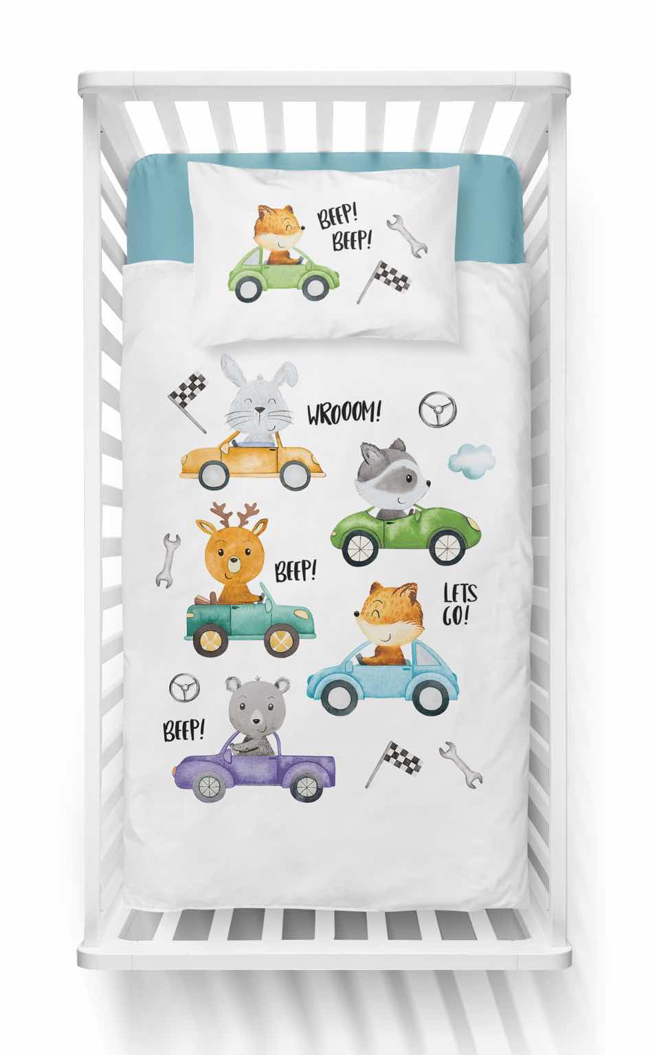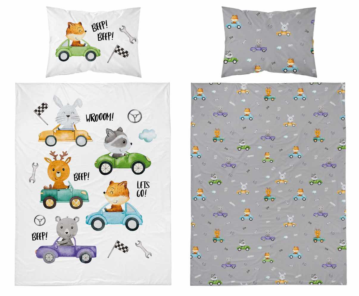 Pościel dziecięca Maya Moo bawełniana 90x120 Rozpędzone Zwierzątka