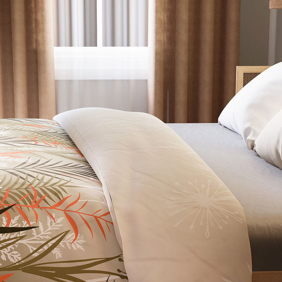 Subtelne, harmonijne wzory inspirowane naturą wprowadzają do sypialni atmosferę spokoju i relaksu.