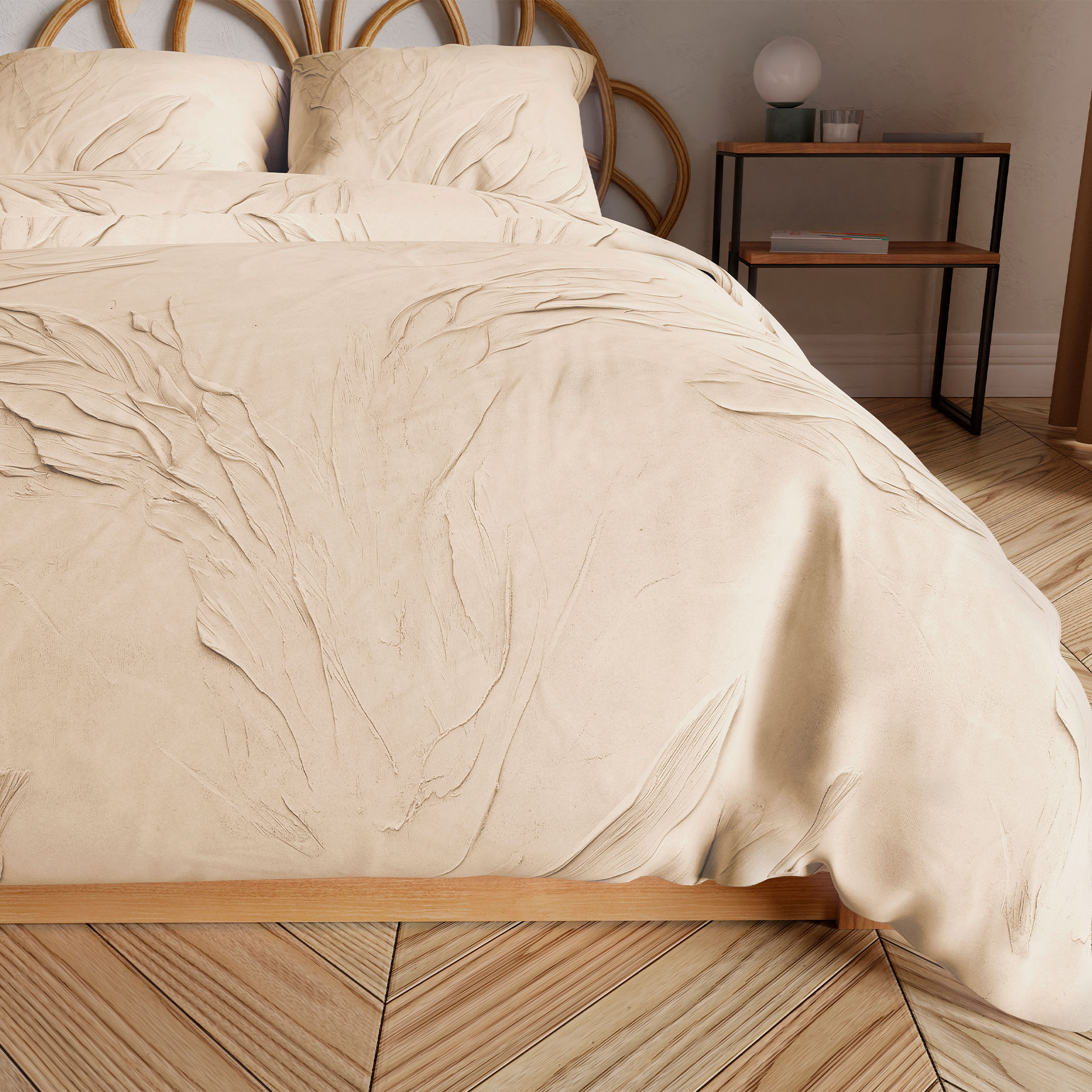 Subtelne, harmonijne wzory inspirowane naturą wprowadzają do sypialni atmosferę spokoju i relaksu.