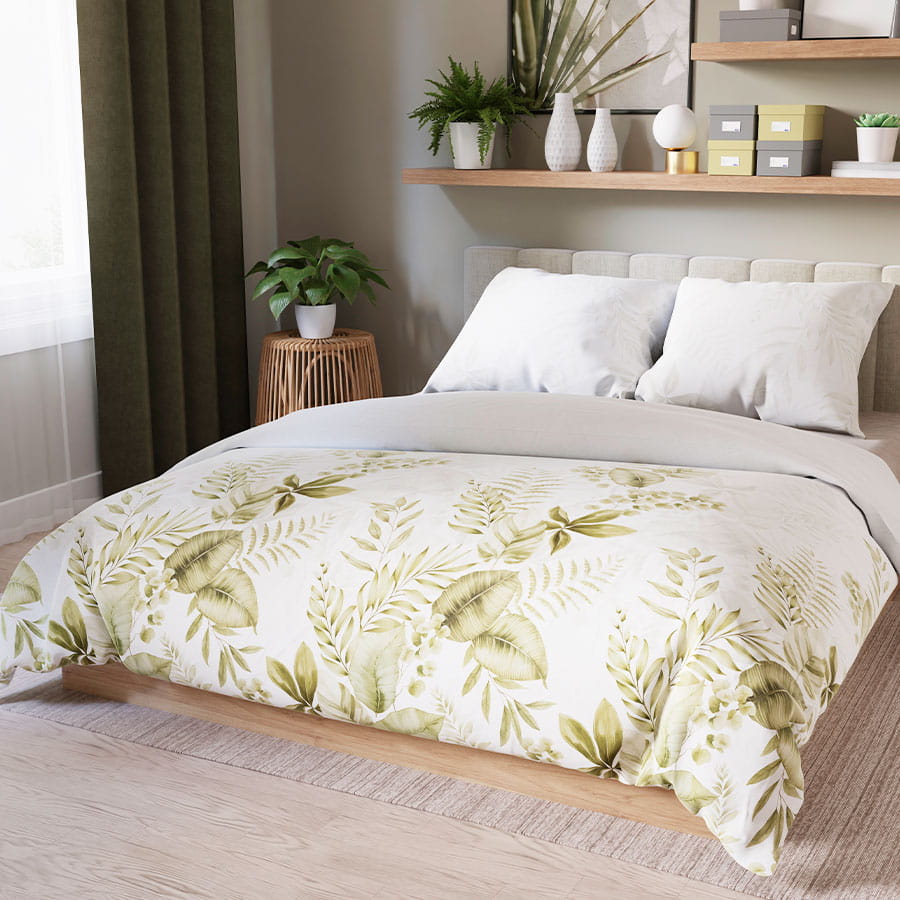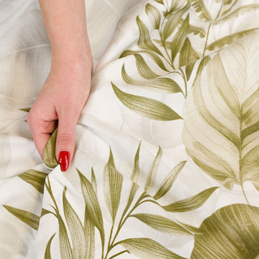Subtelne, harmonijne wzory inspirowane naturą wprowadzają do sypialni atmosferę spokoju i relaksu.