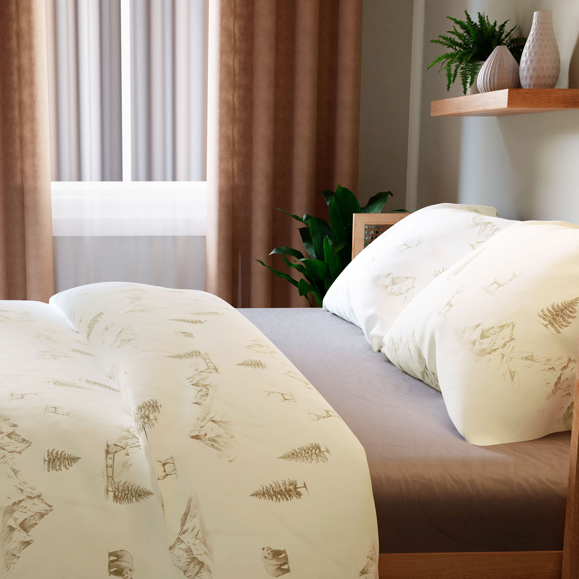 Subtelne, harmonijne wzory inspirowane naturą wprowadzają do sypialni atmosferę spokoju i relaksu.
