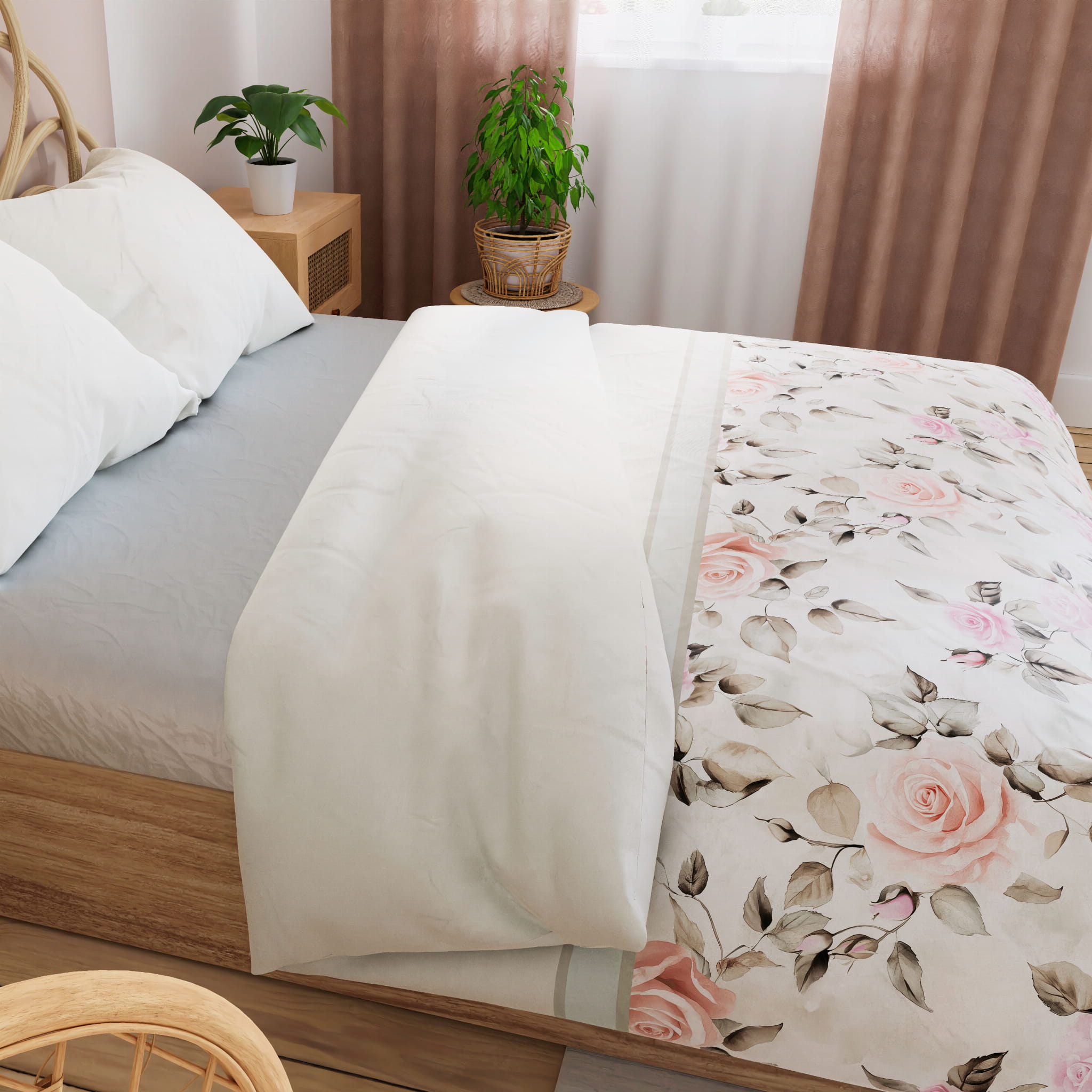 Subtelne, harmonijne wzory inspirowane naturą wprowadzają do sypialni atmosferę spokoju i relaksu.
