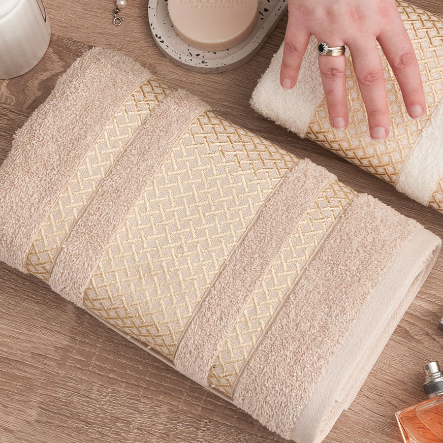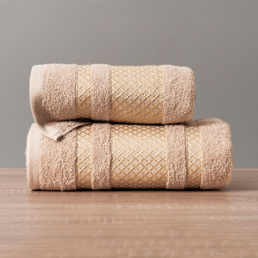 Ręcznik bawełniany Lionel 50x90 Beżowy złota bordiura