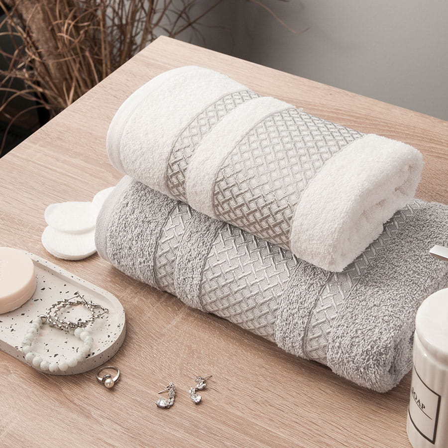 Ozdobna bordiura nadaje ręcznikowi elegancki charakter i sprawia, że świetnie prezentuje się w łazience.