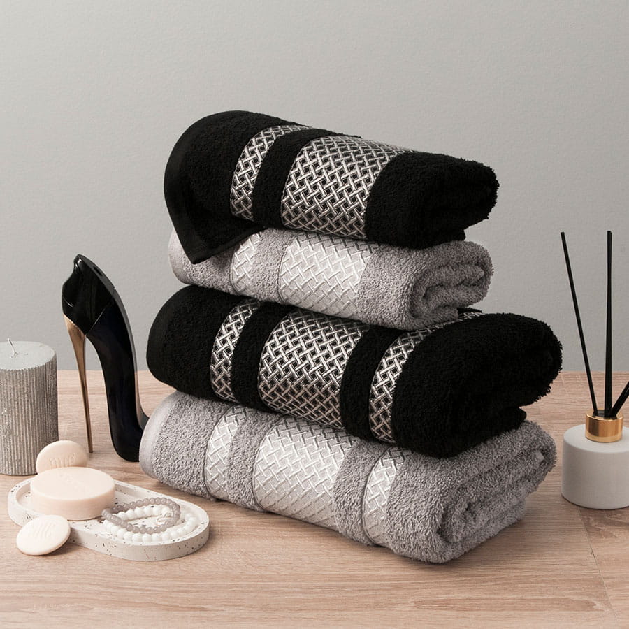 Ręcznik Lionel 50x90 Czarny srebrna bordiura to ręcznik bawełniany,