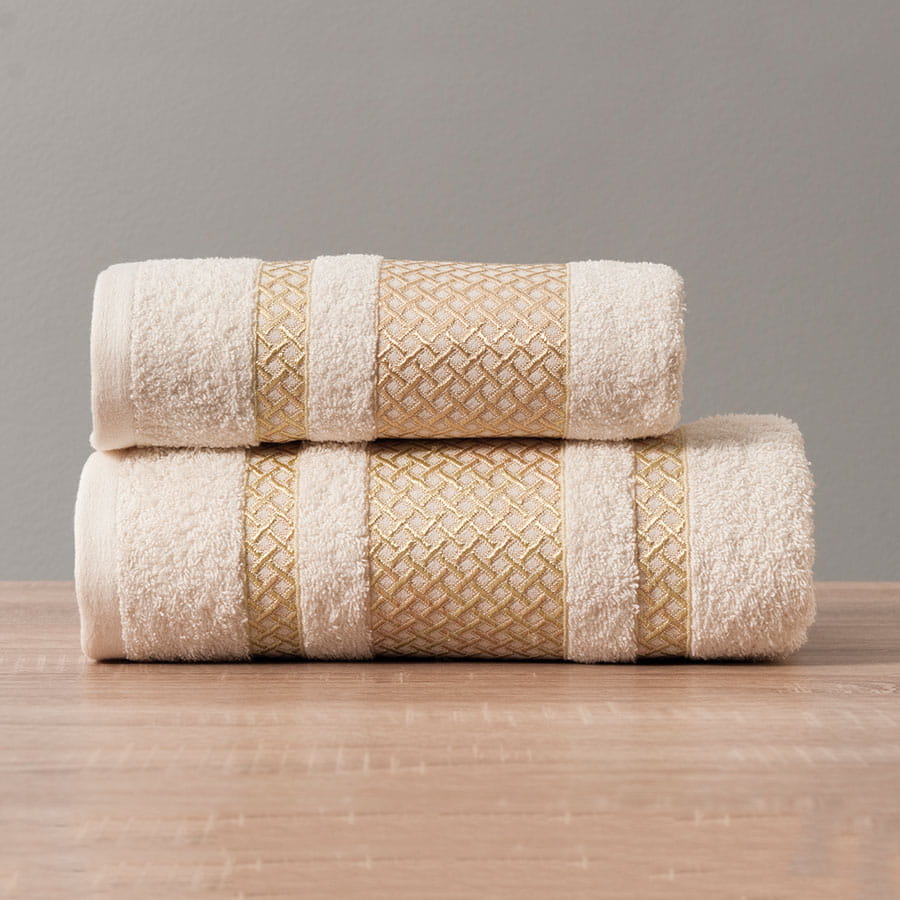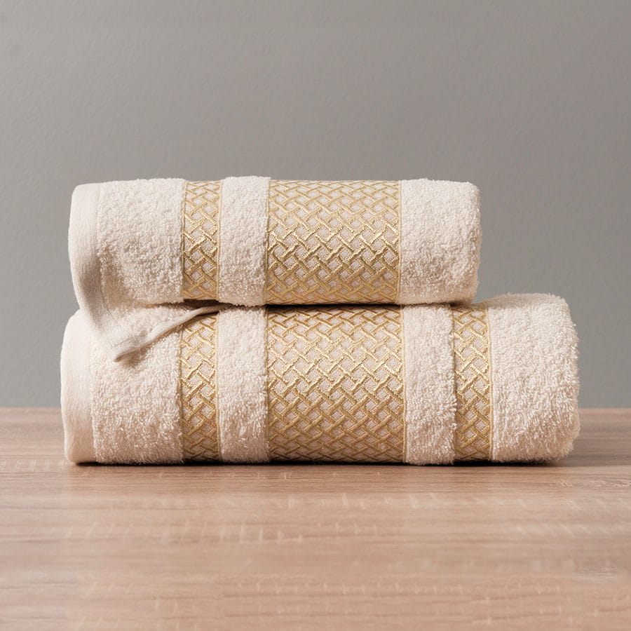Ręcznik Lionel 50x90 Kremowy złota bordiura to ręcznik bawełniany,