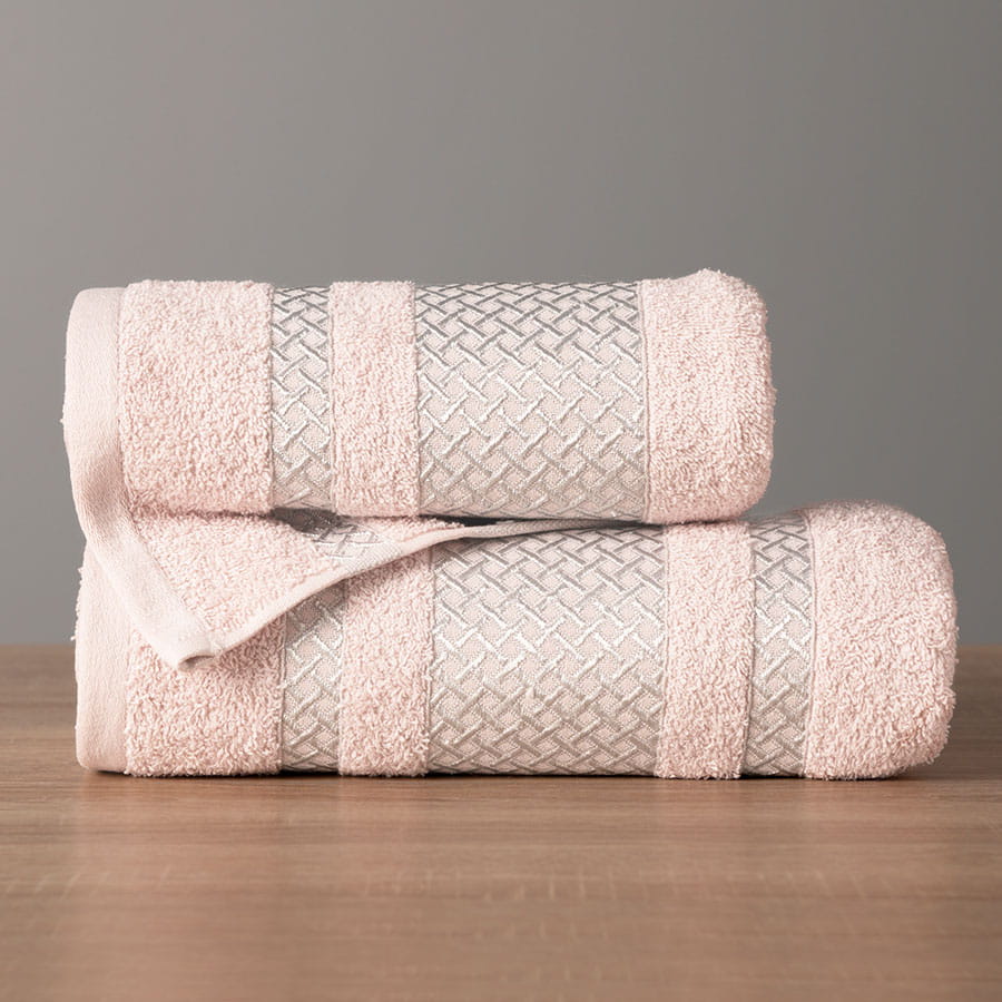 Ręcznik Lionel 50x90 Pudrowy srebrna bordiura to ręcznik bawełniany,